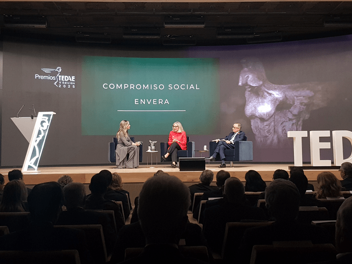 La secretaria de Estado fue la encargada de clausurar la Gala de TEDAE con un reconocimiento especial a Envera, «que nació hace casi medio siglo del corazón de la industria aeronáutica española. Es un ejemplo extraordinario de servicio que contribuye a generar empleo estable y apoyo a miles de familias y personas con discapacidad». Para Valcarce, «Envera encarna los valores que compartimos la sociedad, la industria y el Gobierno, representando lo mejor de nuestro país. Enhorabuena a todos los galardonados».