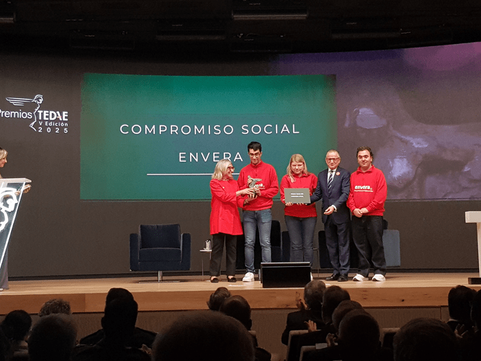 TEDAE, la asociación empresarial que representa a las industrias de Defensa, Seguridad, Aeronáutica y Espacio, ha entregado este martes sus V Premios en los que ha reconocido a Envera con el galardón al «compromiso social» al ser una ONG nacida del corazón de la aviación española, que fue fundada en 1977 por trabajadores de Iberia y que desde entonces acompaña a las personas con discapacidad para que ocupen con dignidad su lugar en el mundo.