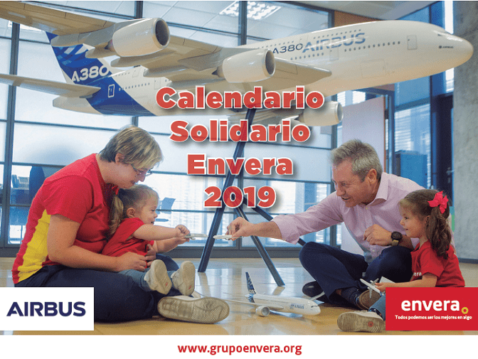Envera estrena su calendario solidario 2019 realizado conjuntamente con la multinacional Airbus, patrono de su Fundación tutelar, cuyos empleados comparten protagonismo con las personas con discapacidad intelectual a las que Envera asiste a lo largo de todo su ciclo vital.
