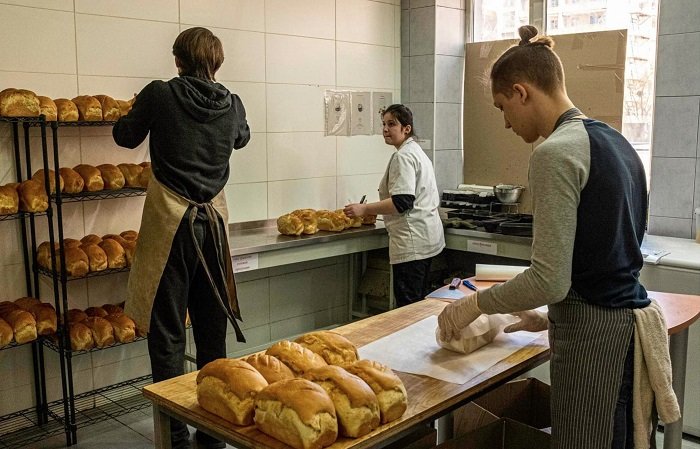 Es el caso de la panadería Good Bread for Good People de Kiev. Antes de la guerra, este establecimiento daba trabajo a dieciséis personas con discapacidad intelectual y ahora permanece abierta, con los hornos funcionando, para alimentar gratuitamente a los pacientes de hospitales, residentes de los hospitales psiquiátricos, militares de las fuerzas armadas, a los ancianos y a las familias con hijos que se quedaron en la ciudad.